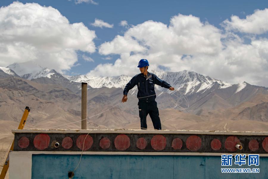 在新疆喀什地區(qū)塔什庫爾干塔吉克自治縣,工作人員為當地農戶鋪設入戶光纖(6月10日攝)。目前,喀什地區(qū)已實現光纖入戶全覆蓋。新華社記者 胡虎虎 攝