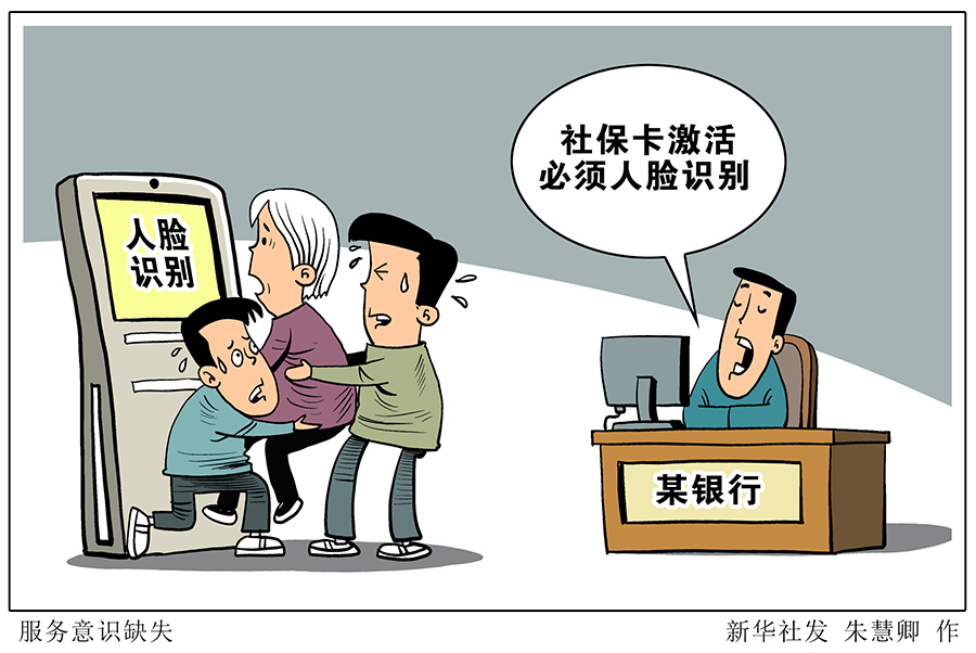 湖北廣水一名行動不便的94歲老人為了激活社???,被親屬抬到銀行、抱起進行人臉識別的視頻,近日在網(wǎng)上廣為傳播。銀發(fā)老人被抱起時,瘦弱而困窘的身影,刺痛人心。社??ū臼潜忝窭裰ǎ绱思せ?,相關(guān)部門及單位應(yīng)當反思。