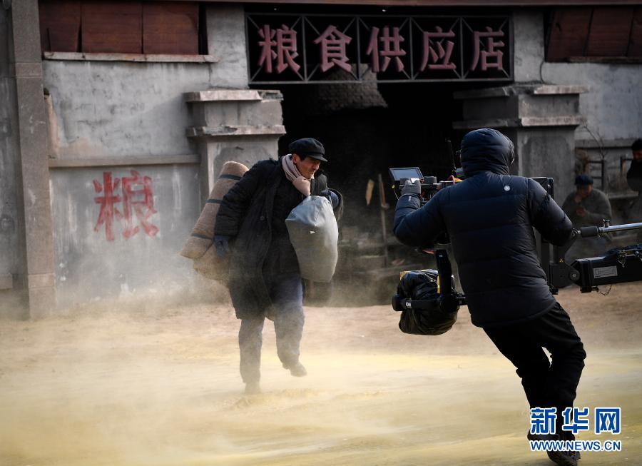 11月25日,焦裕祿扮演者郭曉東(左)在片場拍攝。新華社記者 王鵬 攝