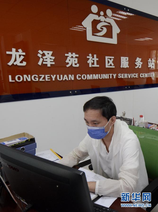社區(qū)工作人員在回龍觀龍澤苑社區(qū)服務站工作(8月11日攝)。新華社記者 李欣 攝
