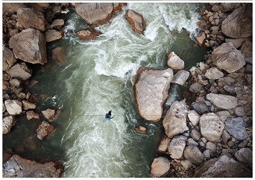 ????2018年3月12日,貴州省威寧縣海拉鎮(zhèn)花果村的村民利用尚未拆除的溜索過(guò)江。楊文斌 攝