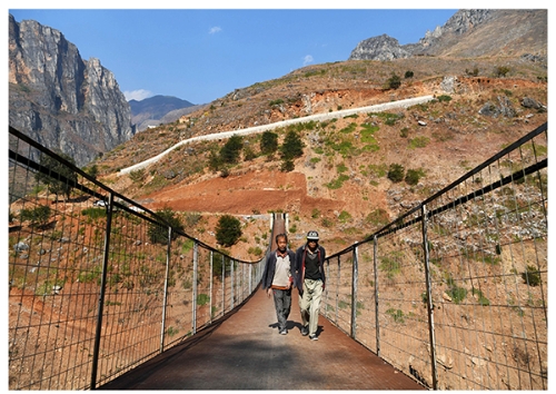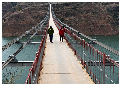 ????2019年12月11日,云南省會(huì)澤縣馬路鄉(xiāng)的村民通過(guò)跨江人行橋到貴州省威寧縣。楊文斌 攝