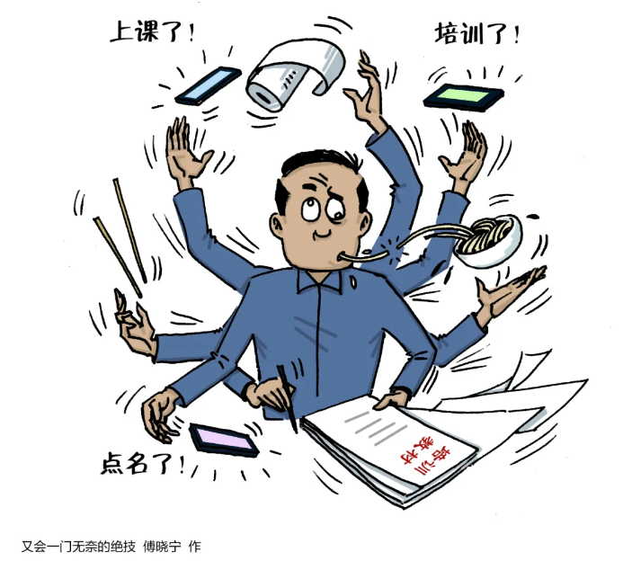 無獨有偶。在某事業(yè)單位工作的王智,剛結(jié)束為期一周的脫產(chǎn)學習,就得馬上完成單位安排的每周兩節(jié)視頻課的學習任務(wù)。王智說,突如其來的培訓打亂了原有的工作安排:“我只能在看視頻時抽空回復信息,特別緊急時干脆拿出電腦處理工作?!?/p>