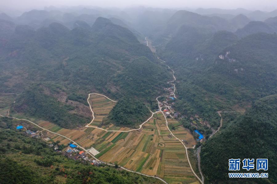 廣西羅城仫佬族自治縣四把鎮(zhèn)的山區(qū)路網(wǎng)(12月15日攝,無人機照片)。新華社記者 曹祎銘 攝