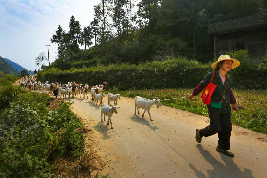 ????2016年12月, 湖南省常德市桃源縣楊溪橋鎮(zhèn)煌山村貧困戶孔文斌享受黨的扶貧好政策,用貸款購買了十多只羊,發(fā)展家庭養(yǎng)殖業(yè)。周桂成 攝