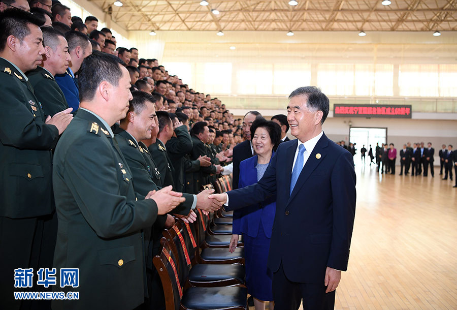9月19日,中共中央政治局常委、全國政協(xié)主席、中央代表團(tuán)團(tuán)長汪洋率代表團(tuán)部分成員分別赴寧夏軍區(qū)、武警寧夏總隊(duì)慰問,并會(huì)見自治區(qū)政法系統(tǒng)代表。這是汪洋慰問武警寧夏總隊(duì)官兵代表。 新華社記者 張領(lǐng) 攝