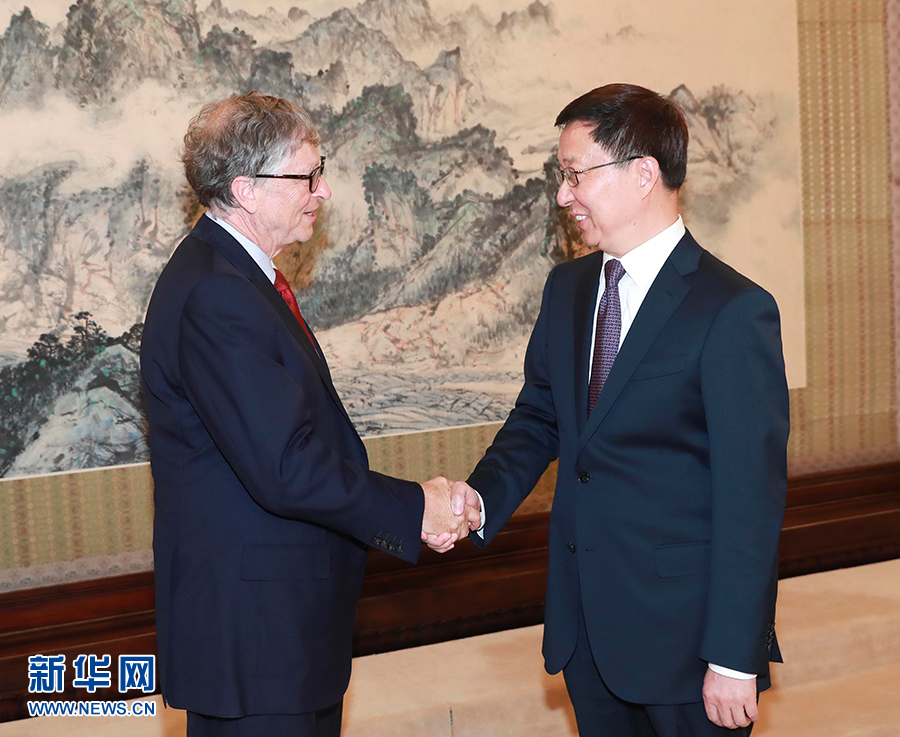 11月8日,中共中央政治局常委、國務(wù)院副總理韓正在北京中南海紫光閣會見美國泰拉能源公司董事長、微軟公司創(chuàng)始人比爾·蓋茨。 新華社記者 龐興雷 攝