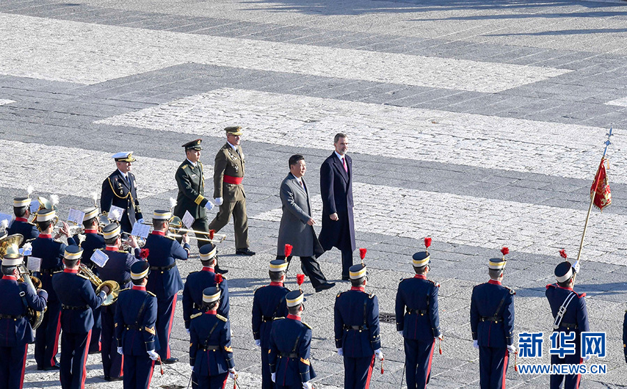 新華社馬德里11月28日電(記者郝薇薇)當?shù)貢r間11月28日,國家主席習近平在馬德里出席西班牙國王費利佩六世舉行的隆重、盛大的歡迎儀式。