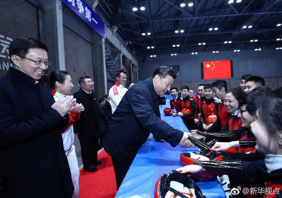 在位于北京石景山首鋼園區(qū)的國家冬季運動訓(xùn)練中心,習(xí)近平先后走進速滑館和冰壺館,看望慰問備戰(zhàn)的運動員、教練員?!坝?xùn)練強度大不大?”“從事這項運動多長時間啦?”“生活上有哪些困難?”“國際上哪些競爭對手最強?”總書記問得仔細(xì)。得知運動員們充滿信心,總書記十分欣慰。他勉勵大家說,舉辦北京冬奧會、冬殘奧會,中國冰雪運動將會上一個大臺階。這是百年不遇的歷史機遇,會應(yīng)運而生一批高水平優(yōu)秀運動員。習(xí)近平強調(diào),體育強則國家強,國家強則體育強。通過北京冬奧會把我國冬季冰雪運動發(fā)展起來,這就是我們的希望。(記者張曉松、鞠鵬、謝環(huán)馳、劉彬)?