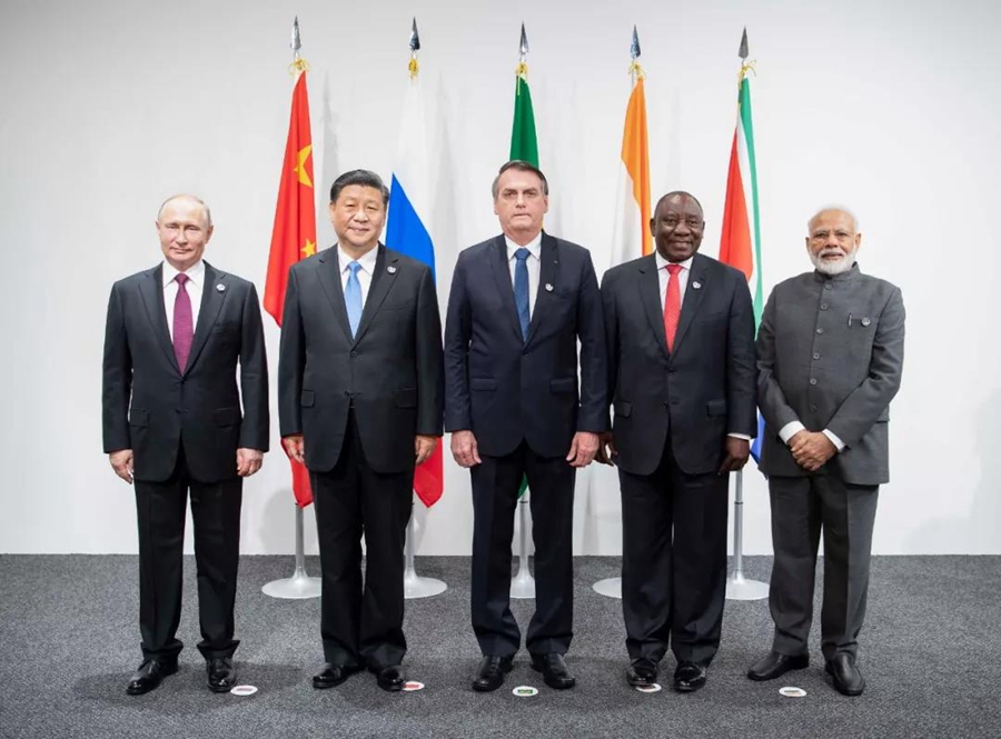 ↑金磚國(guó)家領(lǐng)導(dǎo)人會(huì)晤6月28日在大阪舉行。與會(huì)領(lǐng)導(dǎo)人圍繞金磚伙伴關(guān)系、全球治理、科技創(chuàng)新合作等深入交換意見,凝聚共識(shí)。新華社記者李濤攝