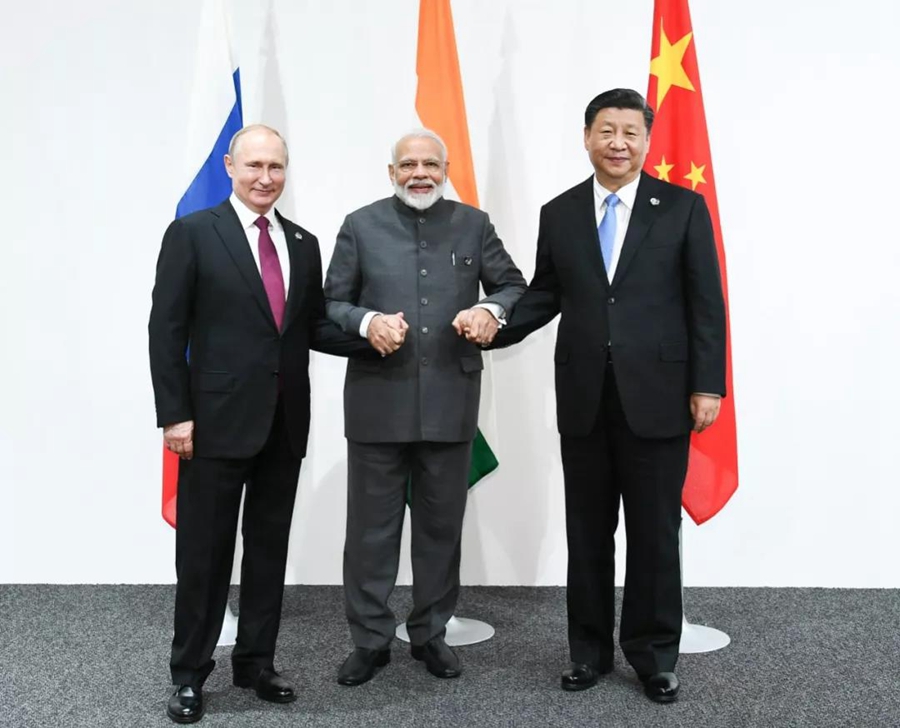 ↑6月28日,習(xí)主席在大阪出席中俄印領(lǐng)導(dǎo)人會(huì)晤,同俄羅斯總統(tǒng)普京、印度總理莫迪就當(dāng)前國(guó)際形勢(shì)、重大國(guó)際和地區(qū)問題、三方合作深入交換意見。新華社記者謝環(huán)馳攝