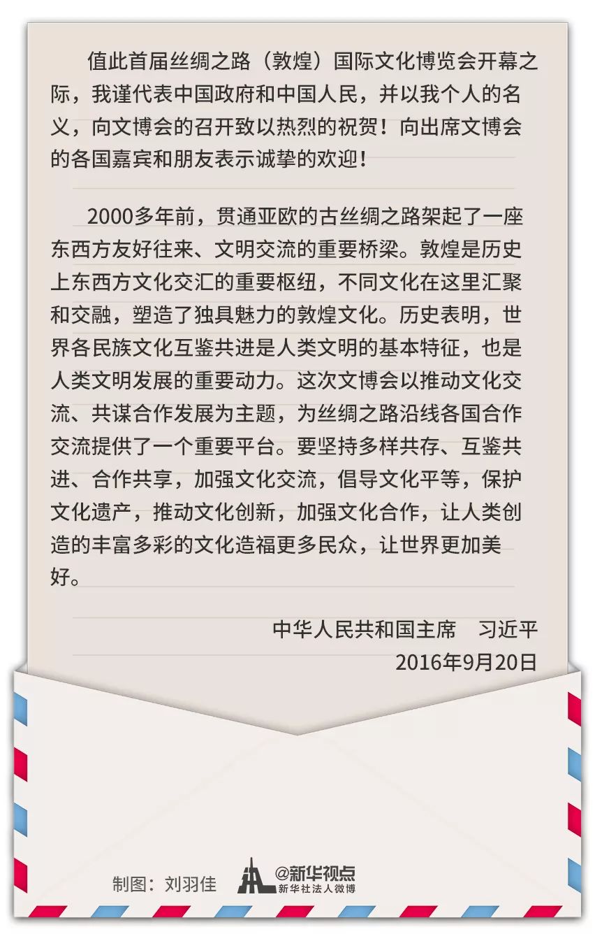 習近平致首屆絲綢之路(敦煌)國際文化博覽會的賀信