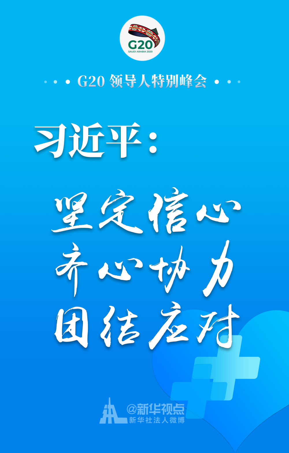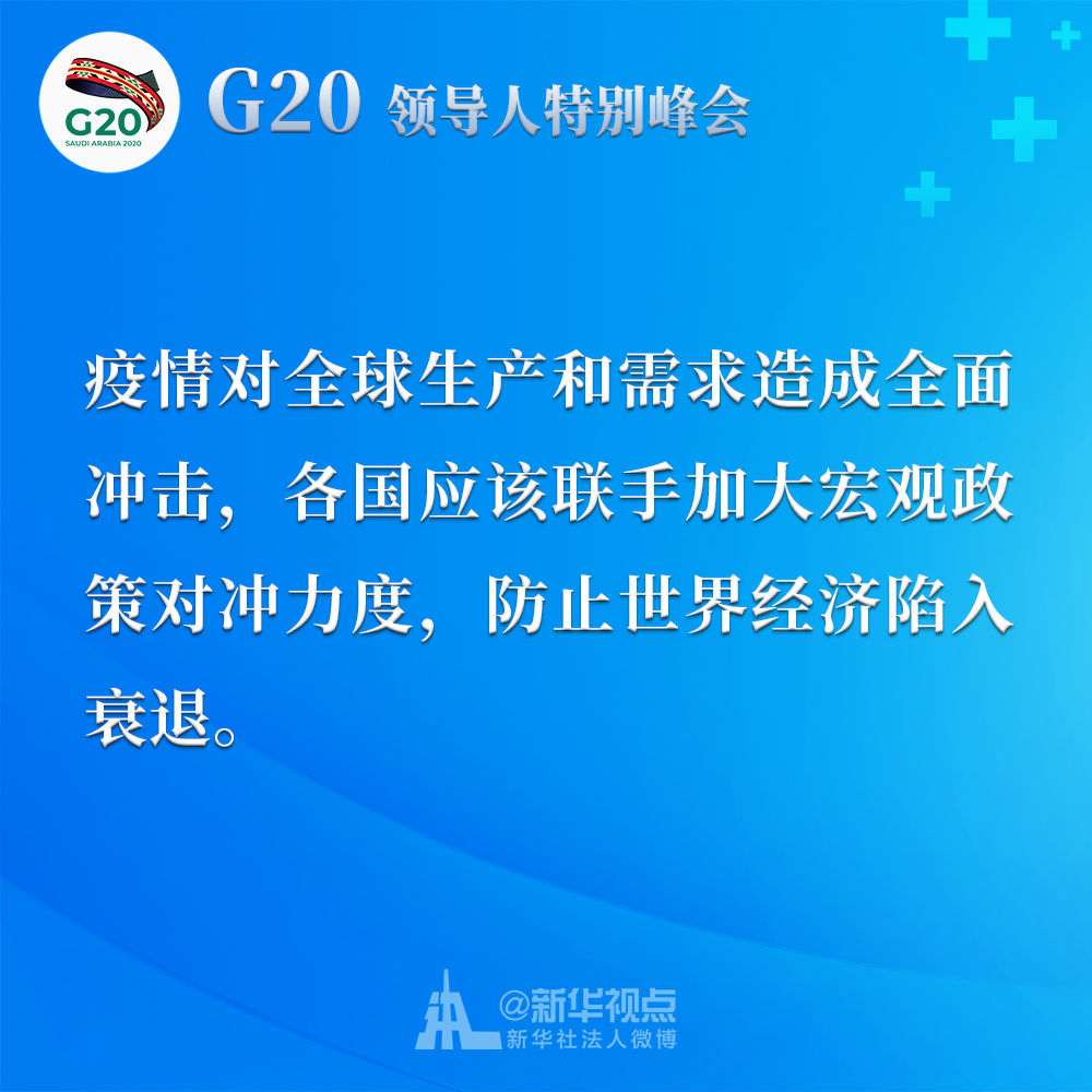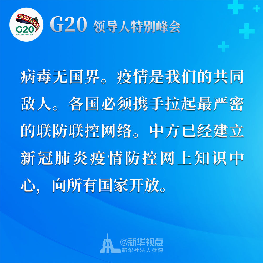 習(xí)近平在二十國集團(tuán)領(lǐng)導(dǎo)人應(yīng)對新冠肺炎特別峰會上重要講話金句↓