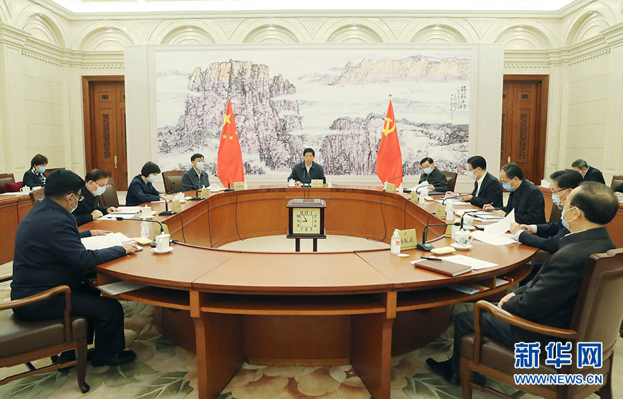 10月30日,中共全國人大常委會黨組在北京舉行會議,傳達學習習近平總書記在黨的十九屆五中全會上的重要講話和全會精神。中共中央政治局常委、全國人大常委會委員長、黨組書記栗戰(zhàn)書主持會議并講話。 新華社記者 姚大偉 攝