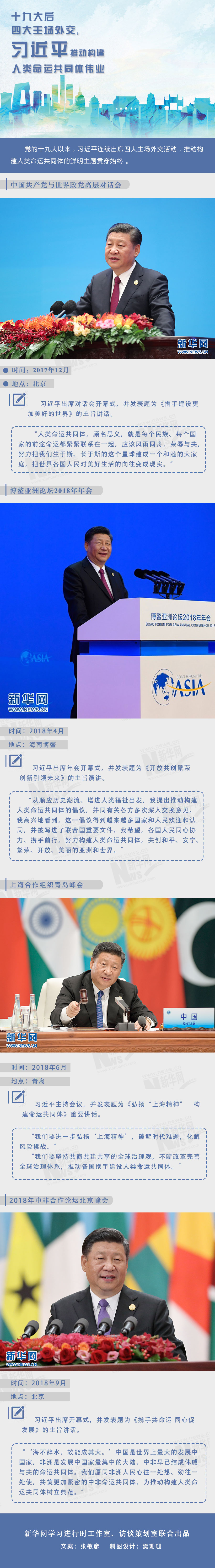 【學(xué)習(xí)進行時】黨的十九大以來,習(xí)近平連續(xù)出席四大主場外交活動,深入闡述了“人類命運共同體”這一理念。在黨的十九大勝利召開一周年之際,新華社《學(xué)習(xí)進行時》原創(chuàng)品牌欄目“講習(xí)所”推出“回望十九大一年間”系列之《四大主場外交,習(xí)近平深入闡述這一理念》,為您梳理解讀。
