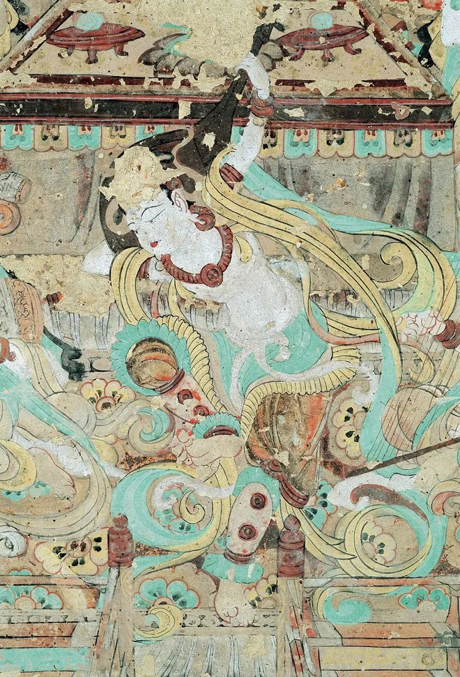 这是莫高窟第112窟关于反弹琵琶舞的特写: