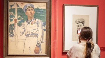 3月29日,参观者在“羊城烟火气——广州出土汉代建筑模型明器展”现场参观。