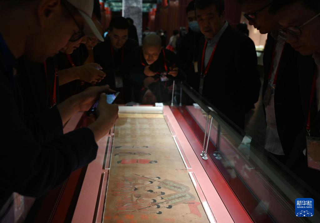 4月28日,嘉宾在北京故宫博物院观看唐代阎立本《步辇图》。