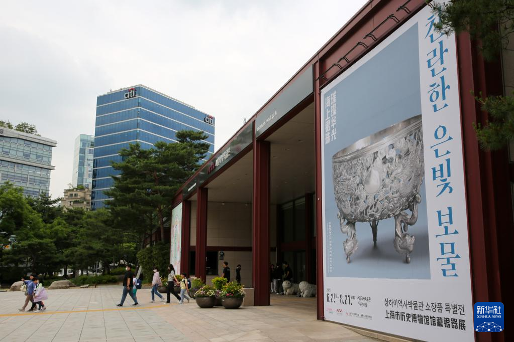 这是6月1日在韩国首尔历史博物馆拍摄的“海上银珠·璀璨华光——上海市历史博物馆馆藏银器展”宣传海报。
