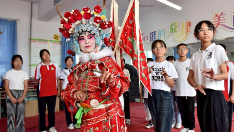9月25日,身穿古装的工作人员在禹州市神垕老街为游客表演。