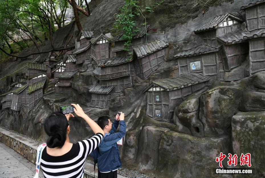 图为重庆临崖峭壁上的巨型艺术浮雕吸引市民打卡。