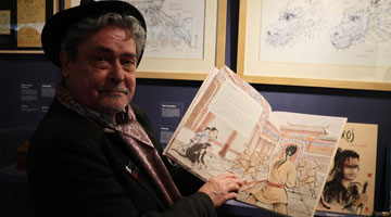 3月23日,马赛在天津市武清区博物馆向参观马氏花丝镶嵌制作技艺专题展的观众介绍展品。