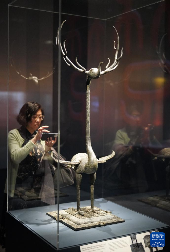 4月19日,观众在美国旧金山亚洲艺术博物馆举办的“凤凰故国——青铜时代曾楚艺术展”上参观。