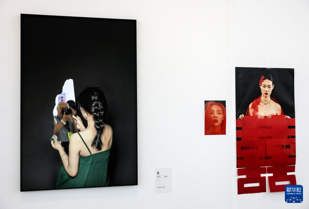 9月19日拍摄的在第24届平遥国际摄影大展展场内展出的中国艺术研究院院校展的作品。