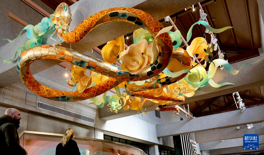 1月9日,参观者走在“灵蛇·生生不已”蛇年特展现场。