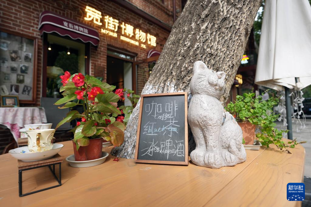 游客在位于哈尔滨市西十三道街的宽街博物馆门前“打卡”(9月3日摄)。