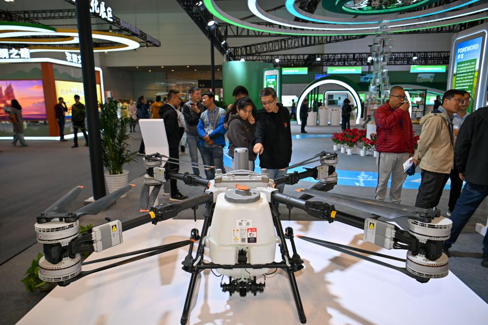 10月17日,观众在第二十二届中国国际农产品交易会的农业科技展区参观。新华社记者 孙凡越 摄