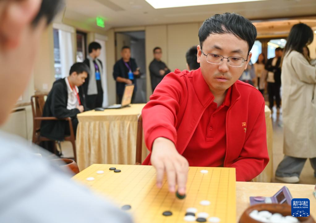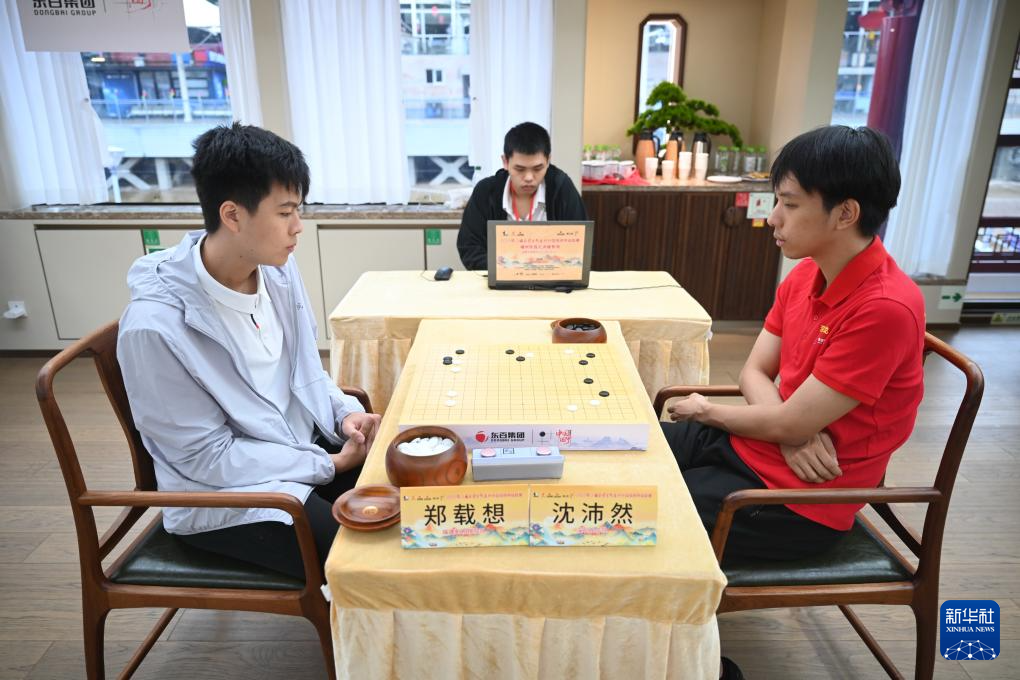 10月28日,福建刺桐棋院队选手郑载想(左)与深圳龙华队选手沈沛然在比赛中。