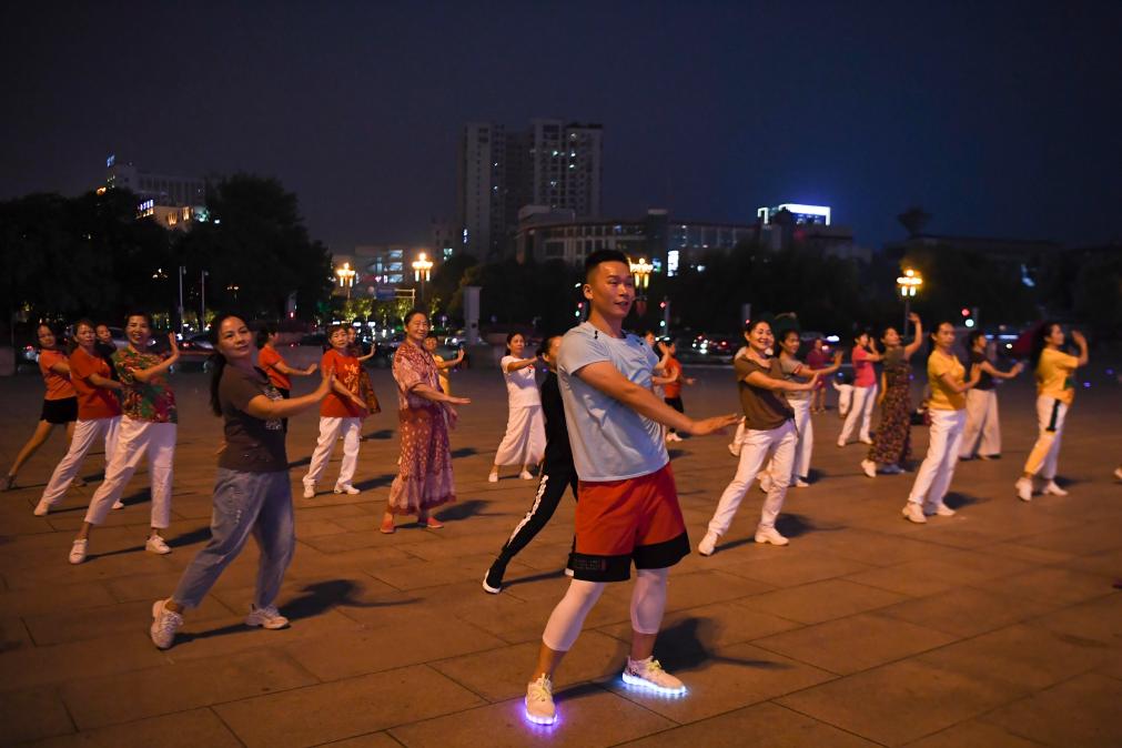 距离江苏约1000多公里的广西,广场舞同样是民众健身的重要载体。在贵港市港北区新世纪广场,总能在晚饭后看到20多支广场舞队伍随音乐起舞。40多岁的何春燕是贵港市排舞广场舞运动协会会长,也是这些广场舞队伍的“领头人”。她笑着说:“大家从晚8点跳到9点半,既开心又健康,还能参加演出,这样的生活很幸福。”