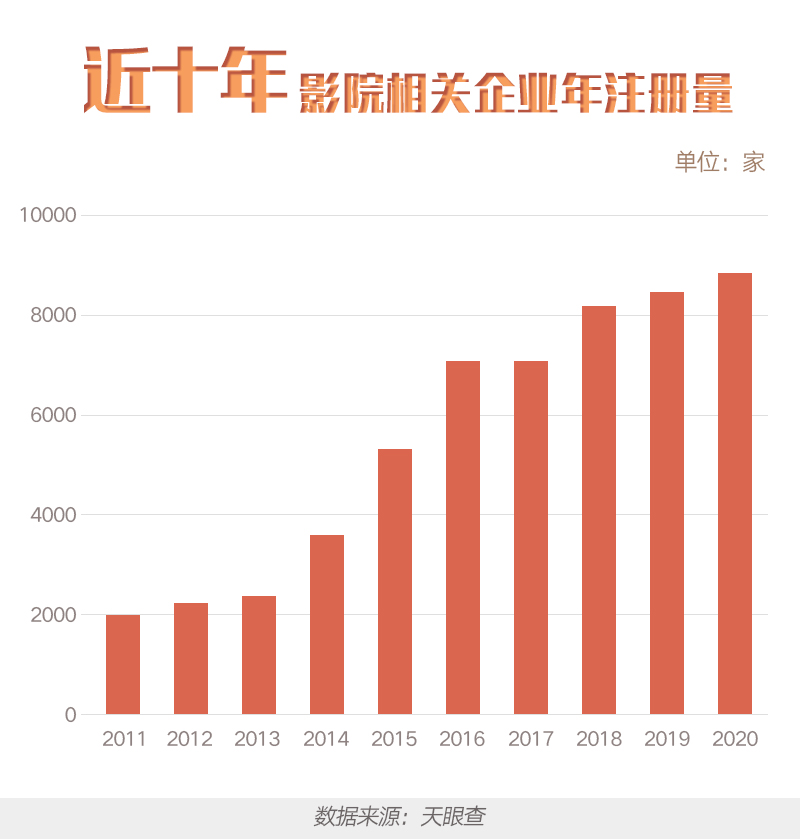 ??? 數(shù)據(jù)顯示,截至2月2日上午8時(shí)50分,春節(jié)檔電影預(yù)售總票房已達(dá)2.11億元。據(jù)天眼查大數(shù)據(jù)顯示,我國(guó)目前共有超過(guò)5.3萬(wàn)家影院相關(guān)企業(yè)。其中,2020年,全國(guó)共新增超8,000家影院關(guān)聯(lián)企業(yè)。近年來(lái),影院相關(guān)企業(yè)增速均保持在15%左右。分地域來(lái)看,全國(guó)多個(gè)一二線(xiàn)城市中,北京擁有的影院關(guān)聯(lián)企業(yè)最多,超3,700家,其次為深圳、廣州、上海和成都。