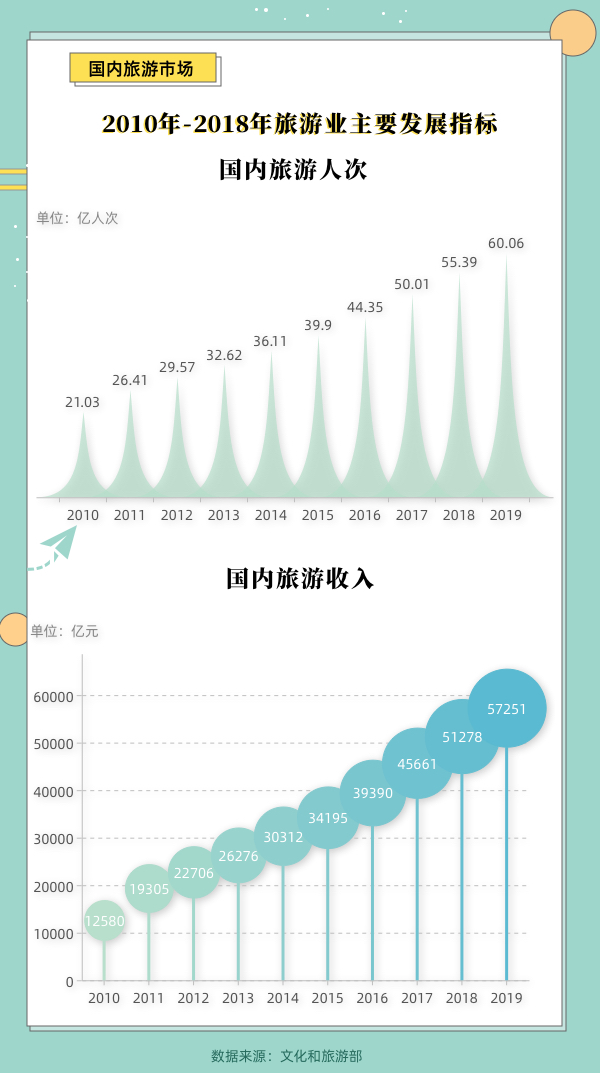 ????? 隨著生活水品的不斷提高,人民的旅游消費(fèi)潛力被進(jìn)一步激發(fā)。假日經(jīng)濟(jì)所釋放的潛力與活力已成為助推國內(nèi)經(jīng)濟(jì)持續(xù)穩(wěn)定恢復(fù)、構(gòu)建新發(fā)展格局的重要?jiǎng)恿?。根?jù)文化和旅游部發(fā)布的數(shù)據(jù),近年來國內(nèi)旅游市場持續(xù)平穩(wěn)增長。