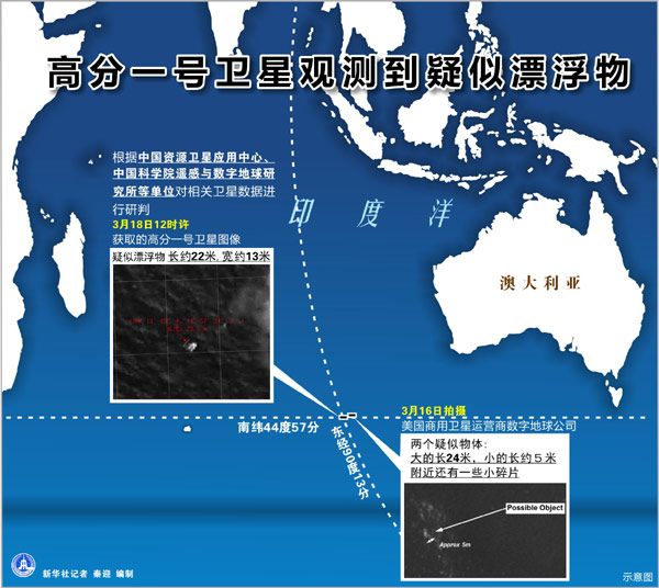 圖表:高分一號衛(wèi)星在南印度洋海域觀測到疑似漂浮物 新華社記者 秦迎 編制