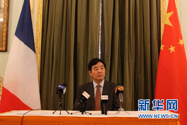 ??? 3月21日,中國駐法國大使翟雋接受駐法中文媒體聯(lián)合采訪。中國駐法國大使翟雋日前就習(xí)近平主席訪法接受駐法中文媒體聯(lián)合采訪時表示,這次訪問是中法建交50周年慶?;顒拥母叱?,是一次具有歷史意義的訪問,將推動中法全面戰(zhàn)略伙伴關(guān)系再上新臺階。新華社記者鄭斌攝