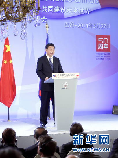 ??? 3月27日,國家主席習(xí)近平在巴黎出席中法建交50周年紀(jì)念大會并發(fā)表重要講話。 新華社記者 鞠鵬 攝