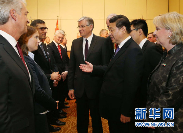 ????招待會開始前,習近平會見了中德企業(yè)家代表,勉勵兩國企業(yè)抓住機遇,共同做大中德合作。