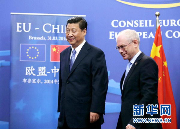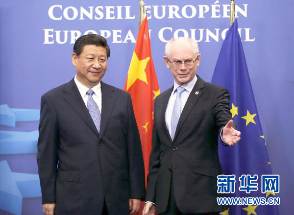 ????新華網(wǎng)布魯塞爾3月31日電(記者 魏建華 錢彤)國家主席習(xí)近平31日在布魯塞爾同歐洲理事會(huì)主席范龍佩舉行會(huì)談。雙方就新形勢(shì)下深化中歐全面戰(zhàn)略伙伴關(guān)系廣泛深入交換意見,達(dá)成重要共識(shí)。習(xí)近平強(qiáng)調(diào),要從戰(zhàn)略高度看待中歐關(guān)系,將中歐兩大力量、兩大市場(chǎng)、兩大文明結(jié)合起來,共同打造中歐和平、增長、改革、文明四大伙伴關(guān)系,為中歐合作注入新動(dòng)力,為世界發(fā)展繁榮作出更大貢獻(xiàn)。