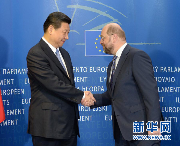 ????新華網(wǎng)布魯塞爾3月31日電(記者孟娜 徐劍梅)國家主席習(xí)近平31日在布魯塞爾會(huì)見歐洲議會(huì)議長(zhǎng)舒爾茨。