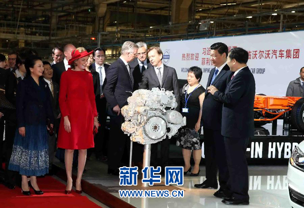 ????4月1日,國家主席習(xí)近平在比利時(shí)國王菲利普陪同下參觀沃爾沃汽車公司根特工廠。這這是習(xí)近平和菲利普國王共同為公司出口中國的第30萬輛汽車揭幕。 新華社記者 姚大偉 攝