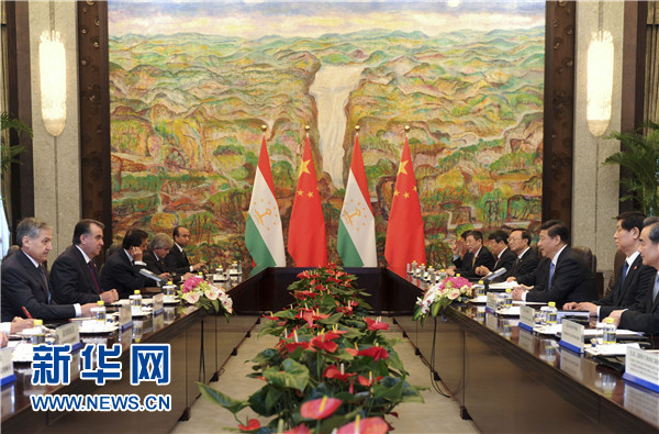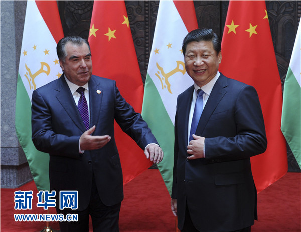 ????習(xí)近平表示,中方始終視塔吉克斯坦為好鄰居、好朋友、好伙伴,支持塔吉克斯坦維護(hù)國(guó)家穩(wěn)定、促進(jìn)經(jīng)濟(jì)發(fā)展、提高人民生活水平。去年中塔建立戰(zhàn)略伙伴關(guān)系以來(lái),兩國(guó)關(guān)系發(fā)展進(jìn)入新階段,各領(lǐng)域合作勢(shì)頭很好。雙方要加緊制定《中塔2015-2020年戰(zhàn)略伙伴關(guān)系合作綱要》,如期推進(jìn)中國(guó)-中亞天然氣管道工程以及塔方輸變電線路改造、交通和邊境口岸基礎(chǔ)設(shè)施建設(shè)、工業(yè)園、農(nóng)業(yè)技術(shù)示范園區(qū)等合作項(xiàng)目,促進(jìn)文化、教育、旅游合作,加強(qiáng)執(zhí)法安全和防務(wù)合作,共同打擊“三股勢(shì)力”、販毒和跨國(guó)犯罪。中方全力支持和配合塔方辦好今年9月舉行的上海合作組織杜尚別峰會(huì),推動(dòng)本組織向團(tuán)結(jié)更緊密、合作更務(wù)實(shí)、行動(dòng)更有效的方向發(fā)展。