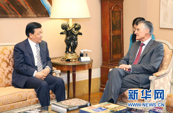 ??? 6月17日至19日,應(yīng)葡萄牙政府邀請(qǐng),中共中央政治局常委、中央書(shū)記處書(shū)記劉云山對(duì)葡萄牙進(jìn)行正式訪問(wèn)。這是6月18日,劉云山在里斯本會(huì)見(jiàn)葡萄牙共產(chǎn)黨總書(shū)記德索薩。 新華社記者 姚大偉 攝