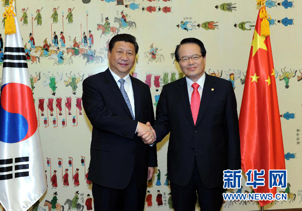 ????習(xí)近平表示,中韓關(guān)系發(fā)展很好,各層次各領(lǐng)域交流活躍。昨天,我同樸槿惠總統(tǒng)進行了富有成果的會談,雙方發(fā)表了聯(lián)合聲明,明確了新形勢下兩國關(guān)系發(fā)展的總體方向和重點合作領(lǐng)域。相信在雙方共同努力下,中韓戰(zhàn)略合作伙伴關(guān)系一定能夠得到新的更大發(fā)展。