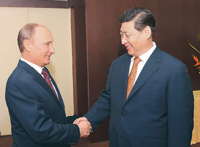 習(xí)近平表示,下一步,中俄雙方要繼續(xù)加大相互政治支持,提高合作深度和廣度,更多開展戰(zhàn)略性大項(xiàng)目聯(lián)合研究開發(fā)、聯(lián)合推廣應(yīng)用、聯(lián)合生產(chǎn)制造,在軍事、安全等領(lǐng)域多采取務(wù)實(shí)聯(lián)合行動(dòng),在人文領(lǐng)域鼓勵(lì)和支持聯(lián)合辦學(xué)、共同發(fā)展文化。雙方要在國(guó)際事務(wù)中開展更多共同行動(dòng),攜手推動(dòng)金磚國(guó)家合作,提升話語(yǔ)權(quán)和影響力,完善全球治理,推動(dòng)國(guó)際關(guān)系民主化,促進(jìn)世界和平與發(fā)展。