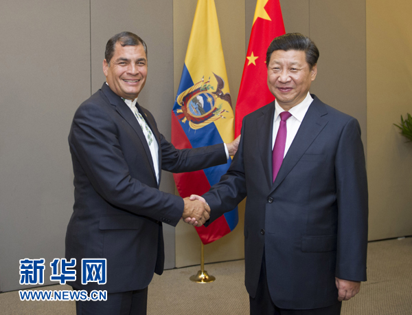 ??? 7月16日,國家主席習(xí)近平在巴西利亞會(huì)見厄瓜多爾總統(tǒng)科雷亞。新華社記者謝環(huán)馳攝