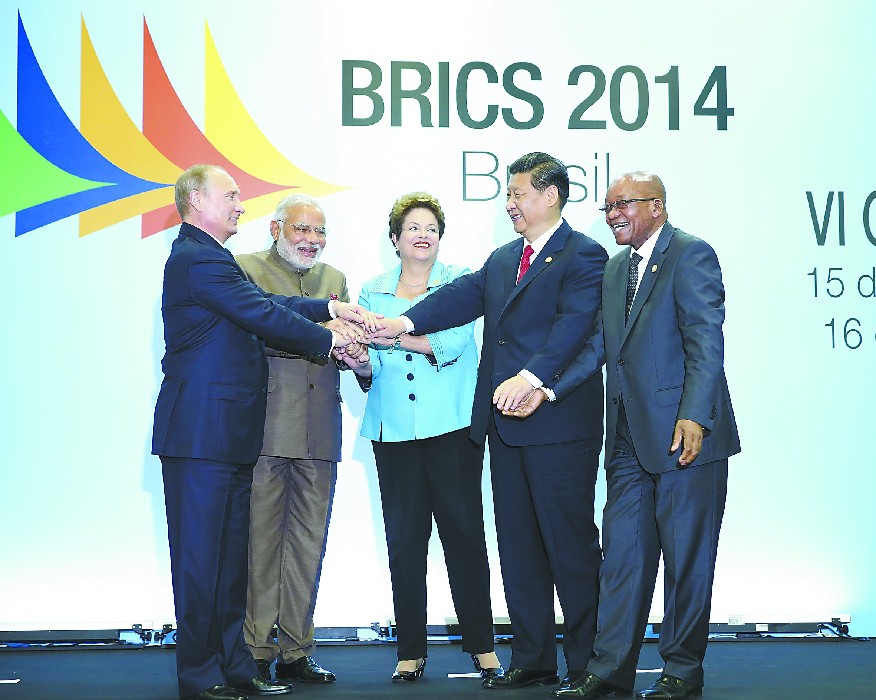 ??“大鵬之動(dòng),非一羽之輕;騏驥之速,非一足之力?!边@句被中國國家主席習(xí)近平15日用作對(duì)金磚國家合作表達(dá)信心的古語,當(dāng)天便得到完美的詮釋:金磚國家宣布創(chuàng)立金磚國家新開發(fā)銀行,總部設(shè)在中國上海,行長來自印度。從提出到落實(shí)不過一年,“平等參與,大家都有份”,金磚銀行設(shè)立的速度和方式讓西方看笑話的人不適應(yīng)。印度媒體稱,“金磚國家”這個(gè)概念自13年前出現(xiàn)起就被西方懷疑和輕視,如今,金磚國家不但相互頻繁走動(dòng),而且“已站穩(wěn)腳跟開始走強(qiáng)了”。