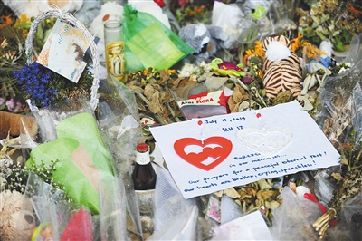 7月29日,阿姆斯特丹機(jī)場(chǎng),乘客悼念馬航MH17遇難者。