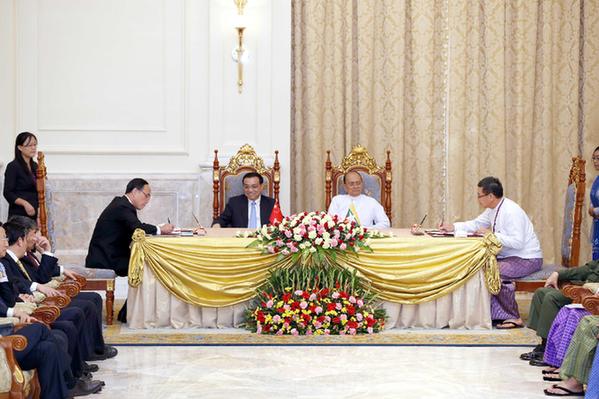 11月14日,李克強總理與緬甸總統(tǒng)吳登盛見證兩國簽署多份協(xié)議。